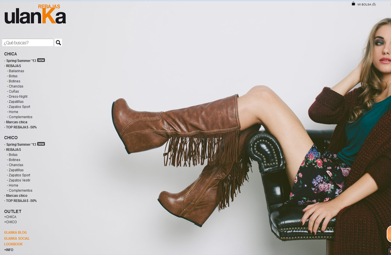 ULANKA es una gran cadena de tiendas de calzado, que también ofrece el servicio de tienda online, por lo que puedes acceder a la última moda desde tu casa, y ahorrar así tiempo y dinero en tus compras online con el acceso a los mismos modelos de los que dispones en las tiendas físicas.